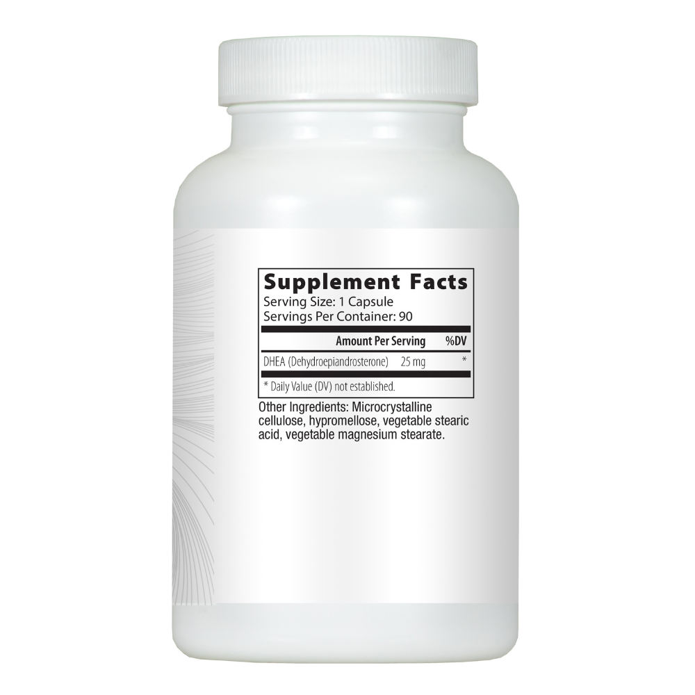 DHEA 25 supports endocrine harmony by balancing androgens, estrogens, and cortisol while promoting stress management, antioxidant protection, cognitive function, libido, and hormone regulation for wellness.